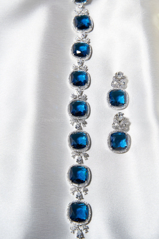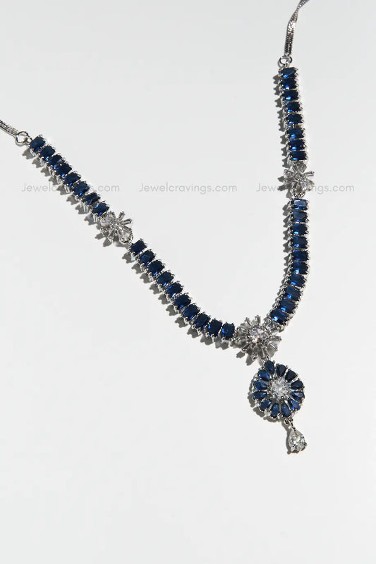 21% OFFDeep Blue American Diamond Pendant Necklace with Earrings