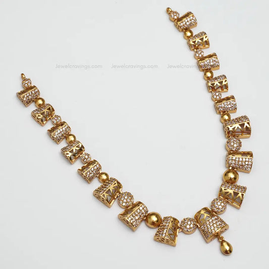 17% OFFStylish Thin Gold Diamond Studded Necklace with Studs