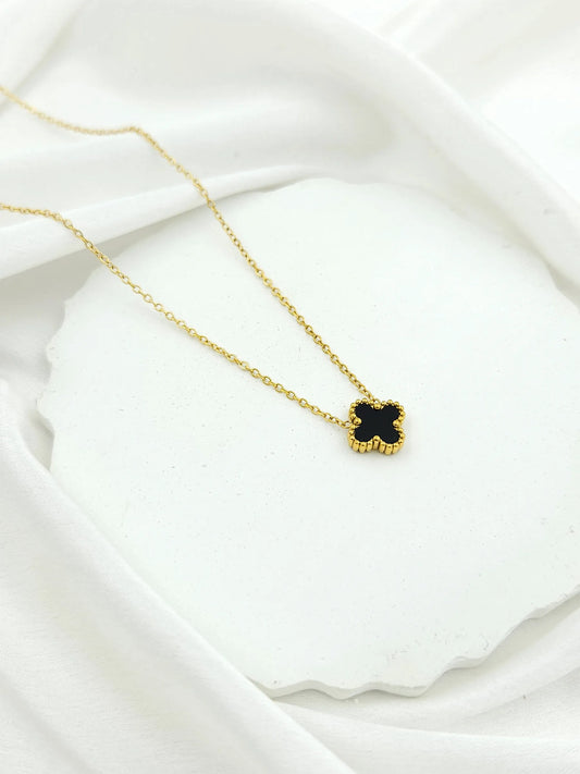 Women Clover Black Lovers Necklace - 18K Gold
