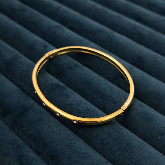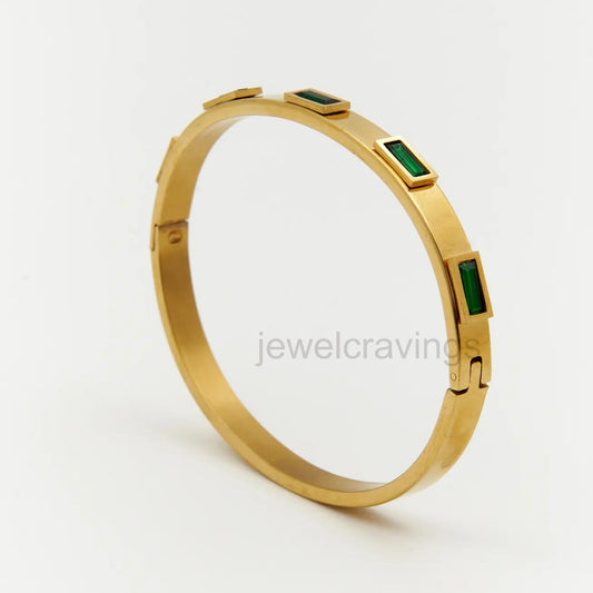 28% OFF18K Gold Plated Emerald Radiance Kada – Bright Green Stone Bracelet with Lock Clasp for Women