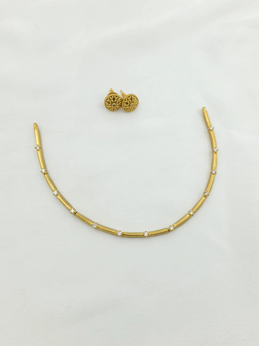 17% OFFStylish Thin Gold Diamond Studded Necklace with Studs
