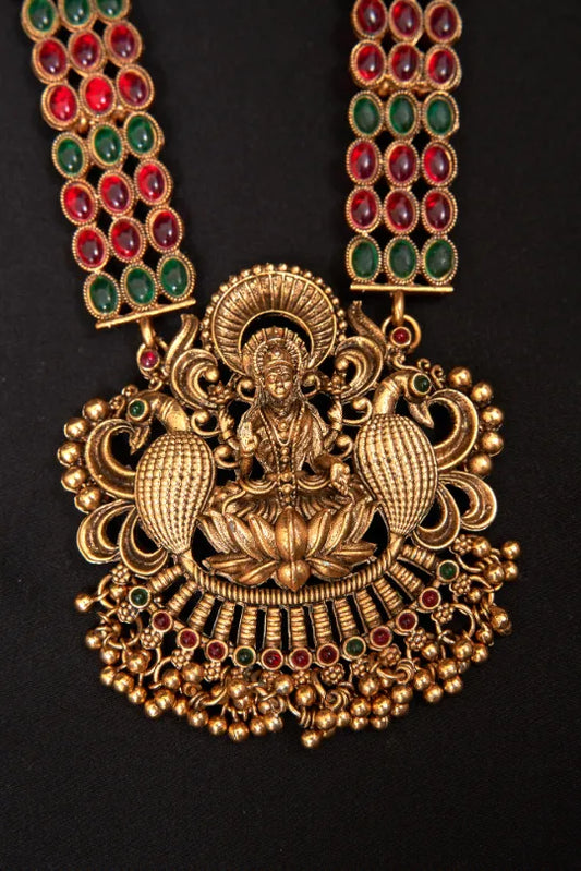 34% OFFAntique Traditional Big Lakshmi Red Green Stone Haram Set
