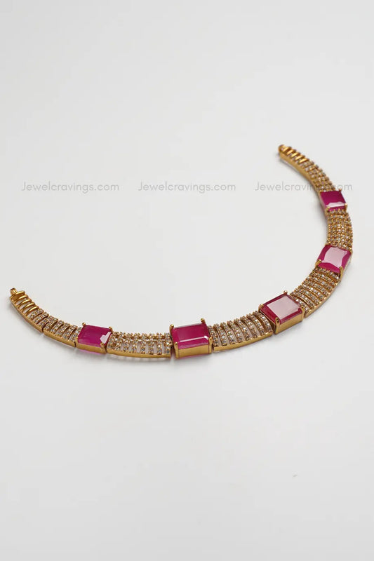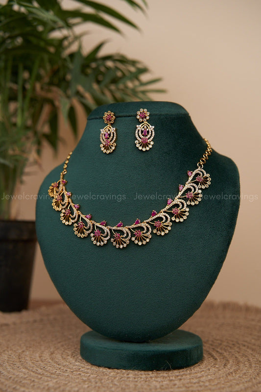 31% OFFSparkling Red Flower American Diamond Necklace with Earrings