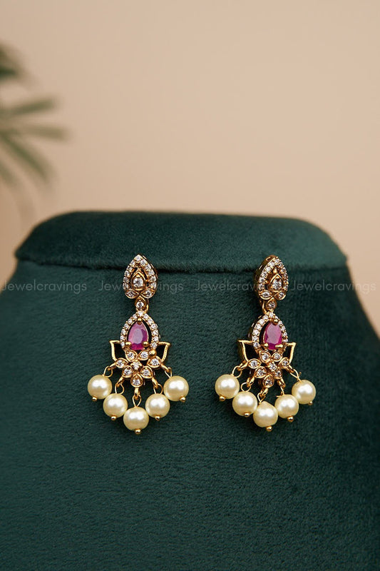 Sold outCZ Ruby Emerald-Star Necklace with Earrings