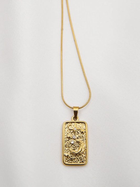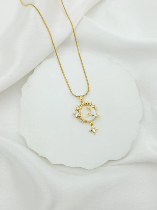 50% OFFZIRCON STAR STUDDED MOON NECKLACE - 18K TARNISH FREE GOLD