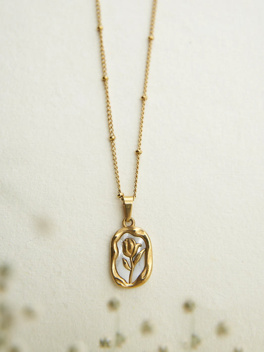 Gold Pearly Rose Necklace - Anti Tarnish