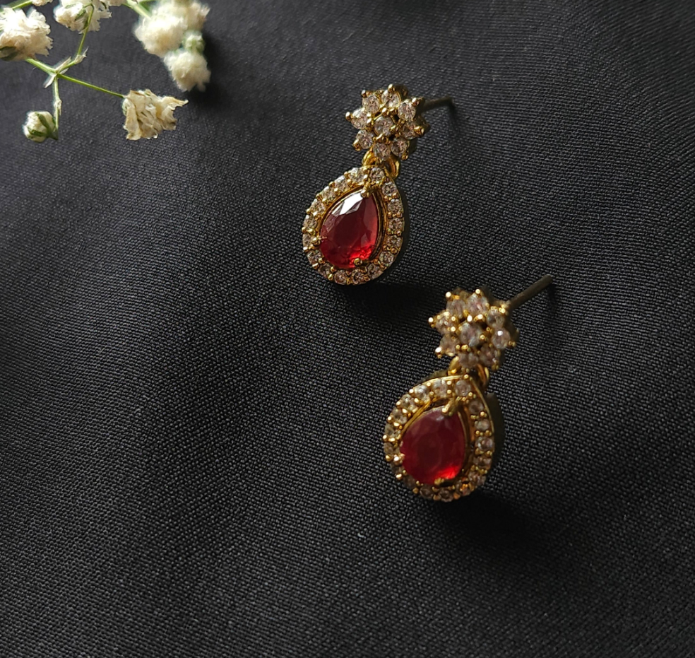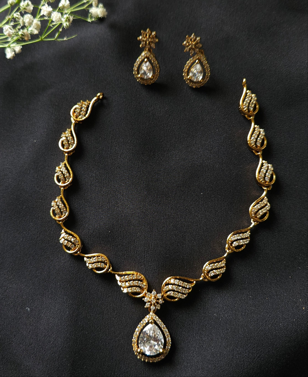 Deep Blue American Diamond Pendant Necklace with Earrings