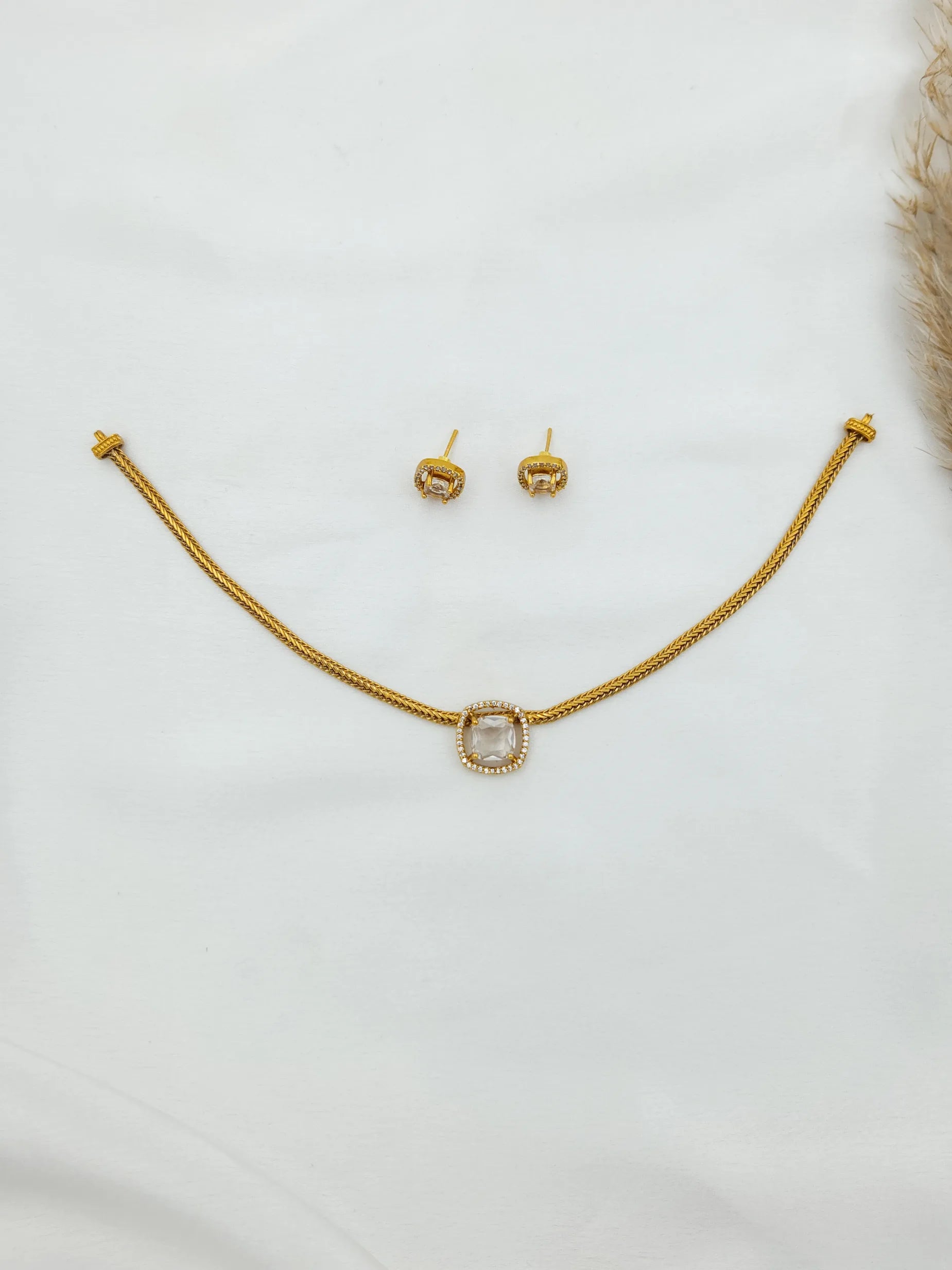 Elegant White Stone Choker With Matching Studs